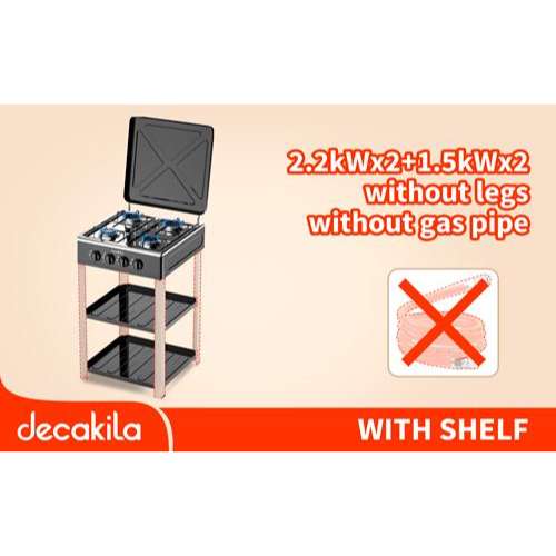 Revitalize your kitchen and cooking experience with the Decakila Four Burner Gas Stove with Shelf (KMGS018B). This premium gas stove not only adds a touch of sophistication to your kitchen but also enhances your cooking efficiency. With its sleek and modern design, this gas stove adds a touch of elegance to your kitchen. The stylish aesthetic seamlessly blends with various kitchen decors.